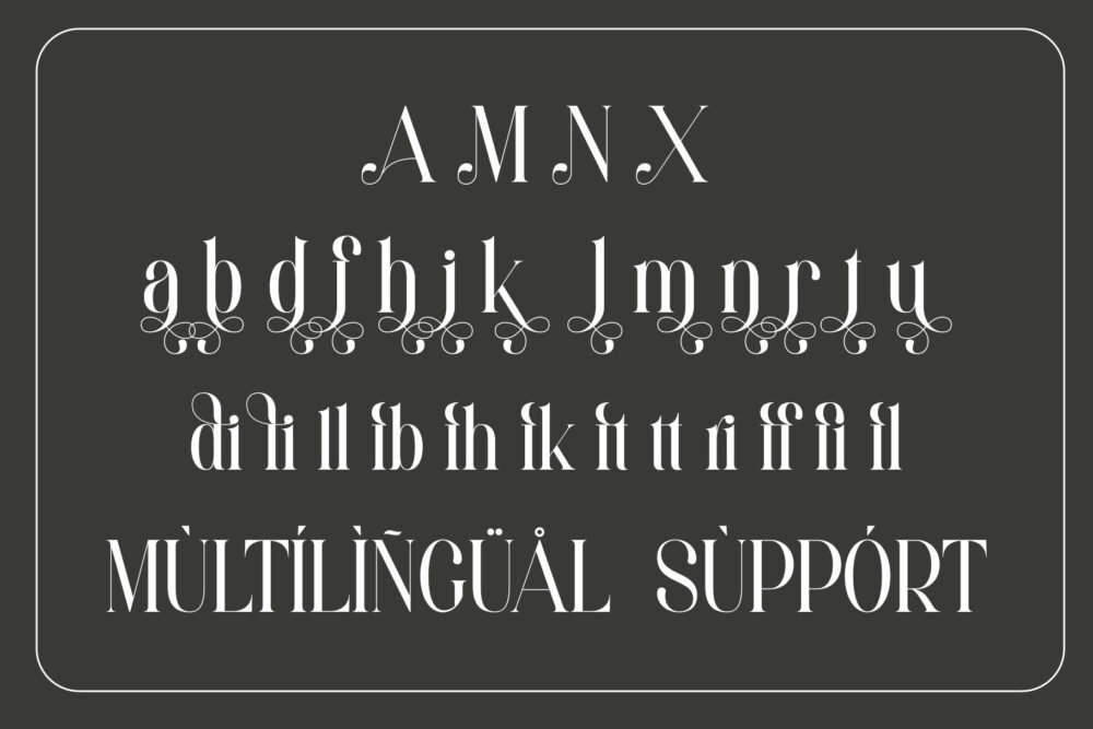 Amelia Stylish Ligature Typeface, inspired by the famous minimalist logo perfect for the purposes of designing templates, brochures, videos, advertising branding, logos and more.