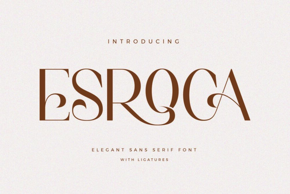 Esroca Sans Font Typeface inspired by the famous minimalist logo perfect for the purposes of designing templates, brochures, videos, advertising branding, logos, invitation, layout design, elegant crafting, beauty design and other.